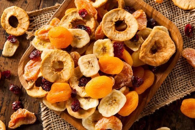 Grapes or prunes, dried apricots, dates, figs or dried tomatoes and a variety of fruits that have been dehydrated not only concentrate their energy intake but also it does not exceed 300 Kcal per 100 grams, but they also have the good ability to concentrate nutrients and have a high fiber content, which makes them an excellent food to reverse or prevent constipation and promote intestinal function. They also constitute one good source of potassium and B complex vitamins, as well as vitamin E and others antioxidants, so they are an ideal food for athletes looking to recover after intense effort and are also appropriate fruits for those who have high blood pressure, given their low sodium content and their richness in other micronutrients.